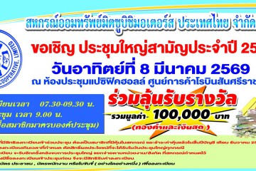 ขอเชิญ สมาชิกสหกรณ์ออมทรัพย์มิตซูบิชิมอเตอร์ส ประเทศไทย จำกัด เข้าร่วมประชุมใหญ่สามัญ ประจำปี 256...